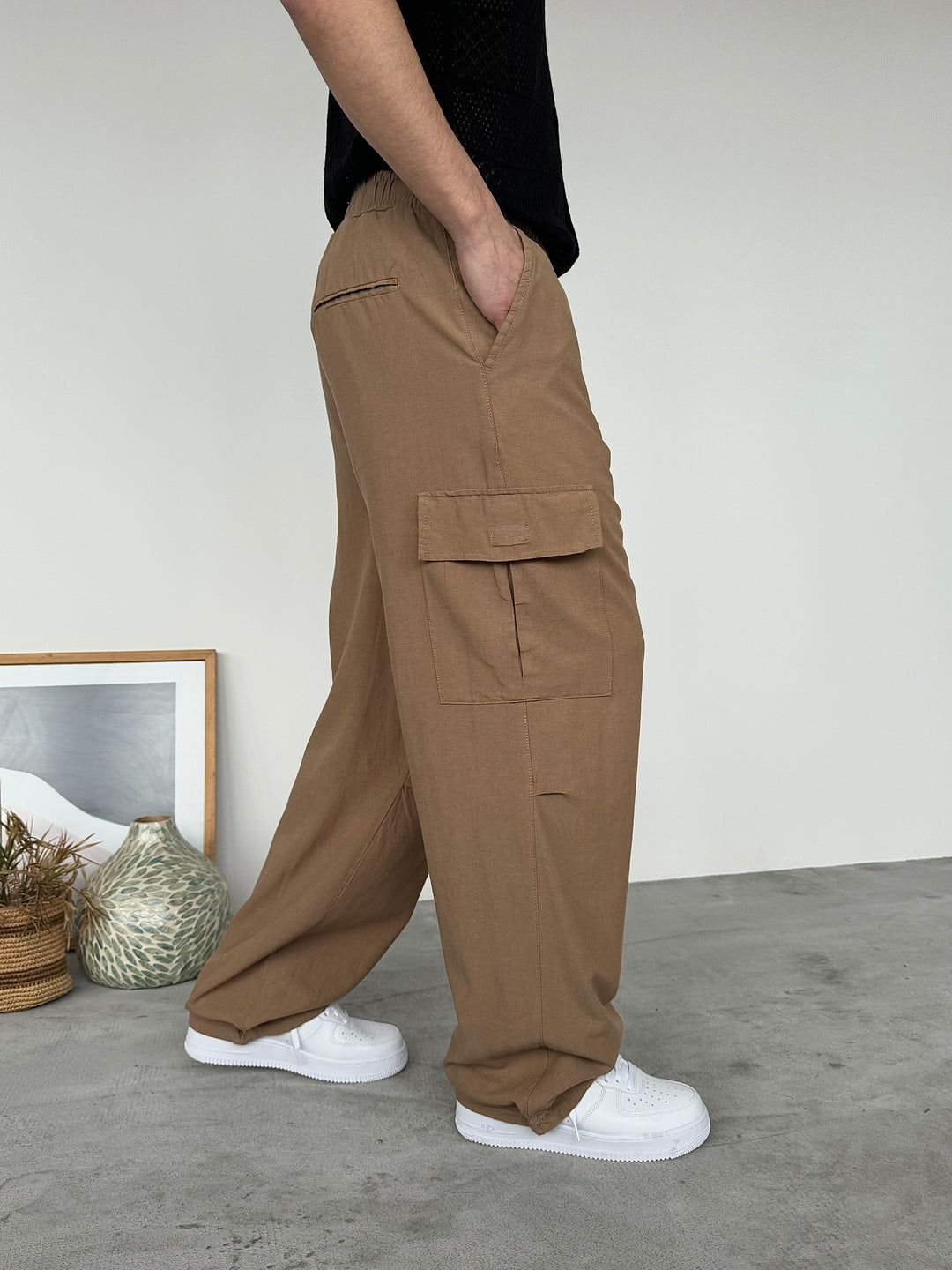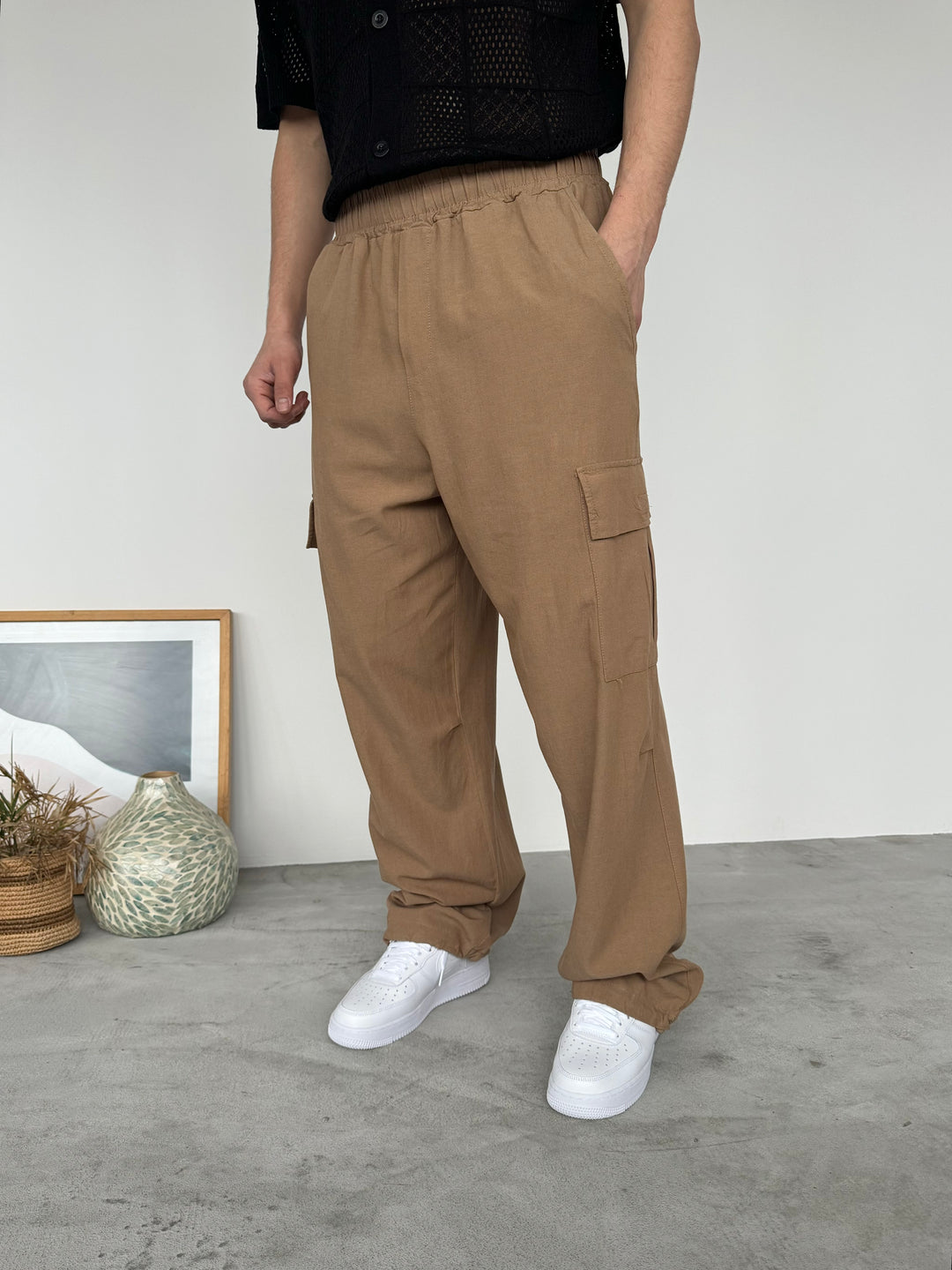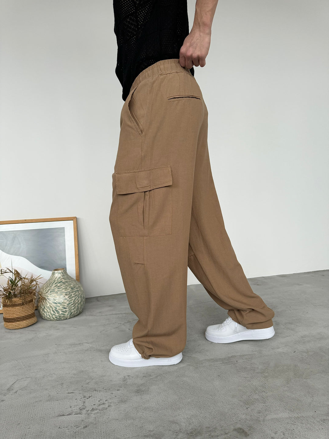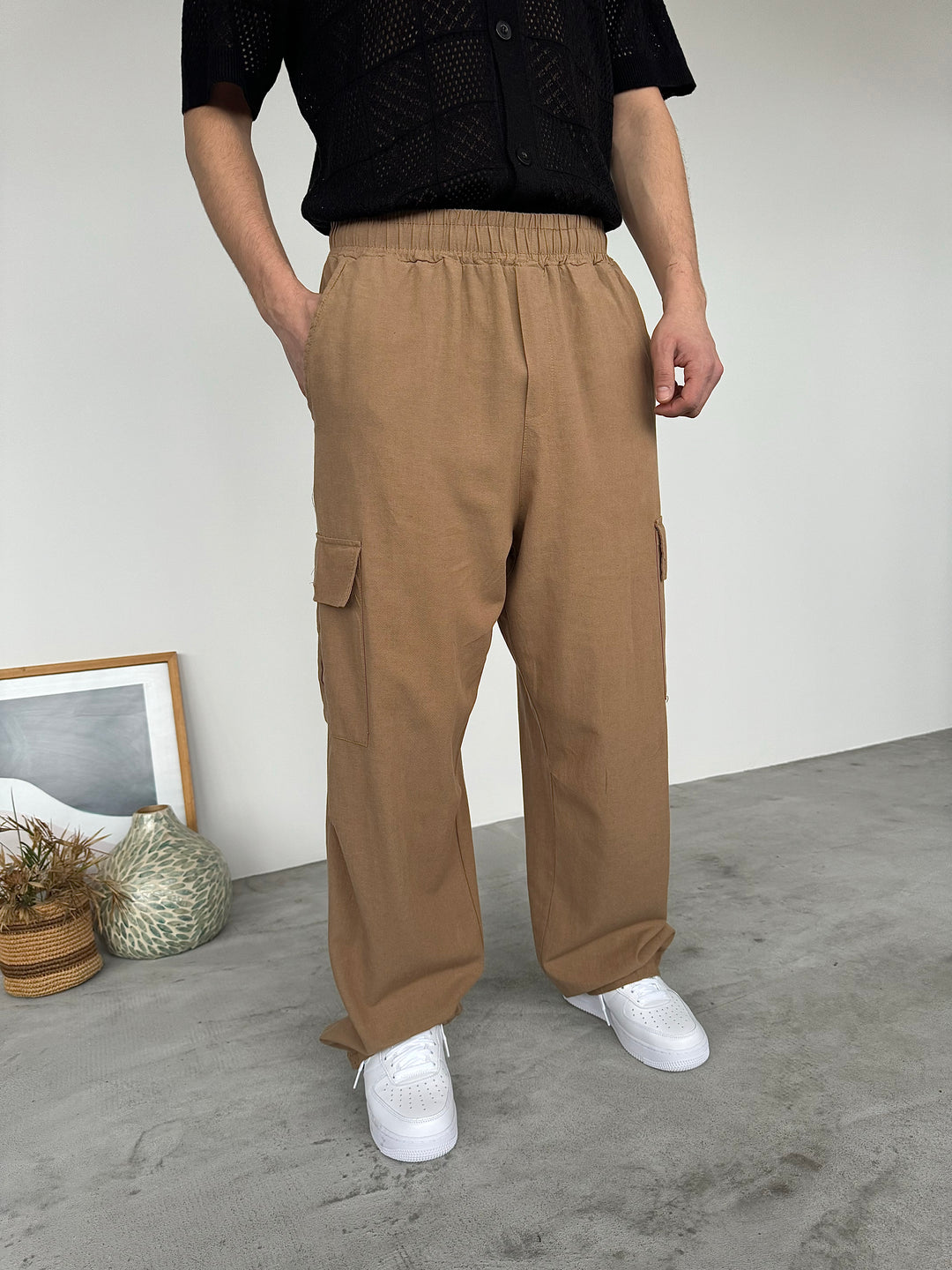 فضفاضة ملائمة بنطلون شحن الكتان | جمل